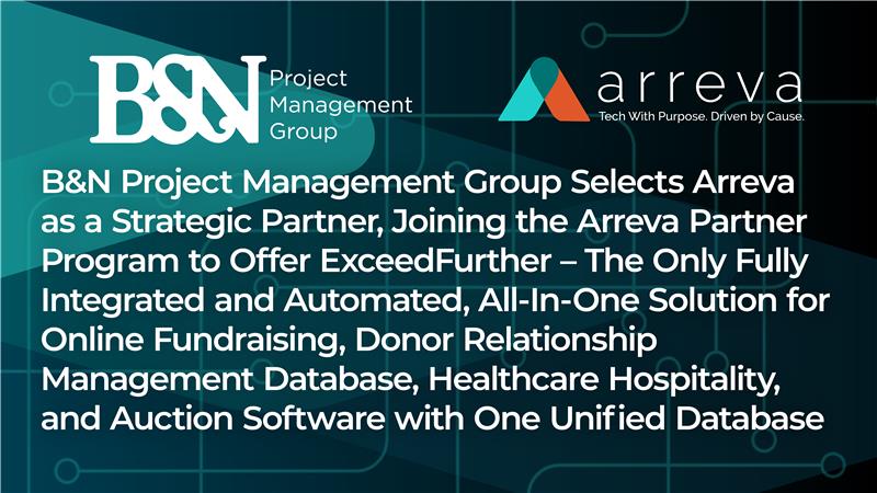 B&N Project Management Group (B&N) has chosen Arreva as a strategic partner, joining the Arreva Partner Program to offer ExceedFurther—the only fully integrated and automated, all-in-one solution for online fundraising, donor relationship management database, healthcare hospitality, and auction software with one unified database.